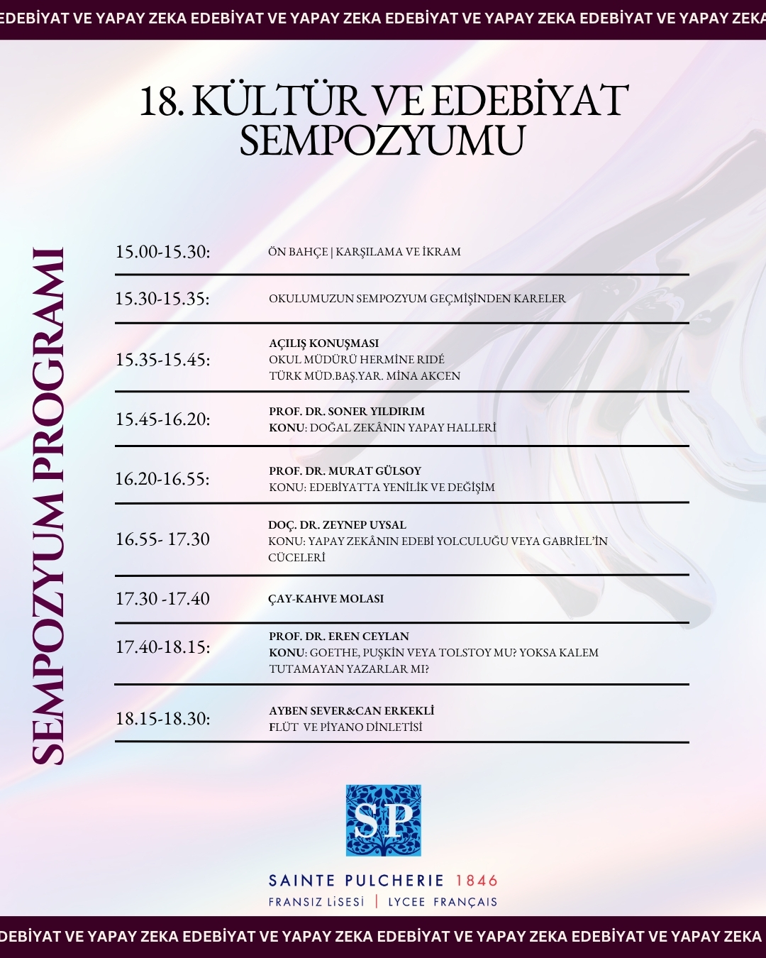 Sainte Pulchérie Fransız Lisesi’nin 2004’ten bu yana düzenlediği Kültür ve Edebiyat Sempozyumu, 18. yılında da geçmiş sempozyumlara katılan birçok sanatçı ve akademisyenin katkılarıyla edindiği birikimi sürdürüyor.