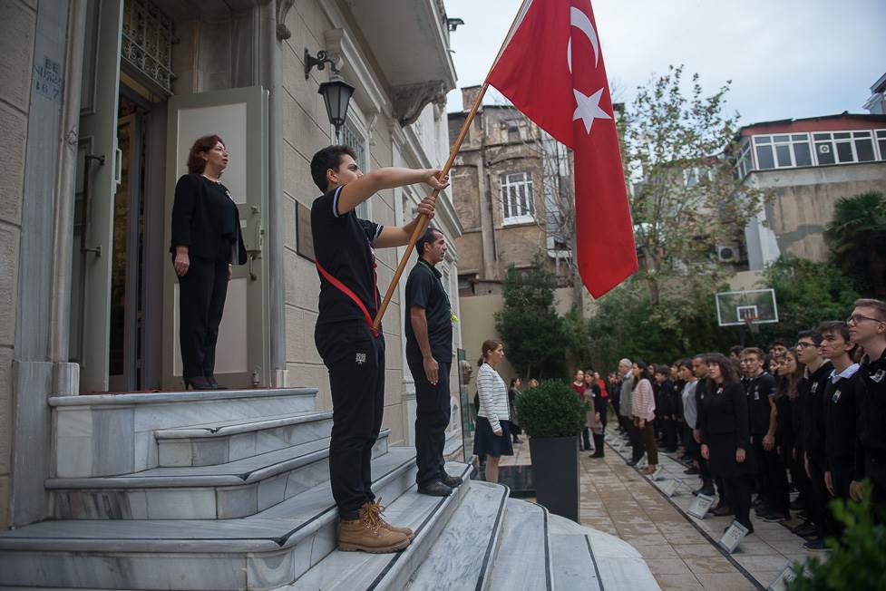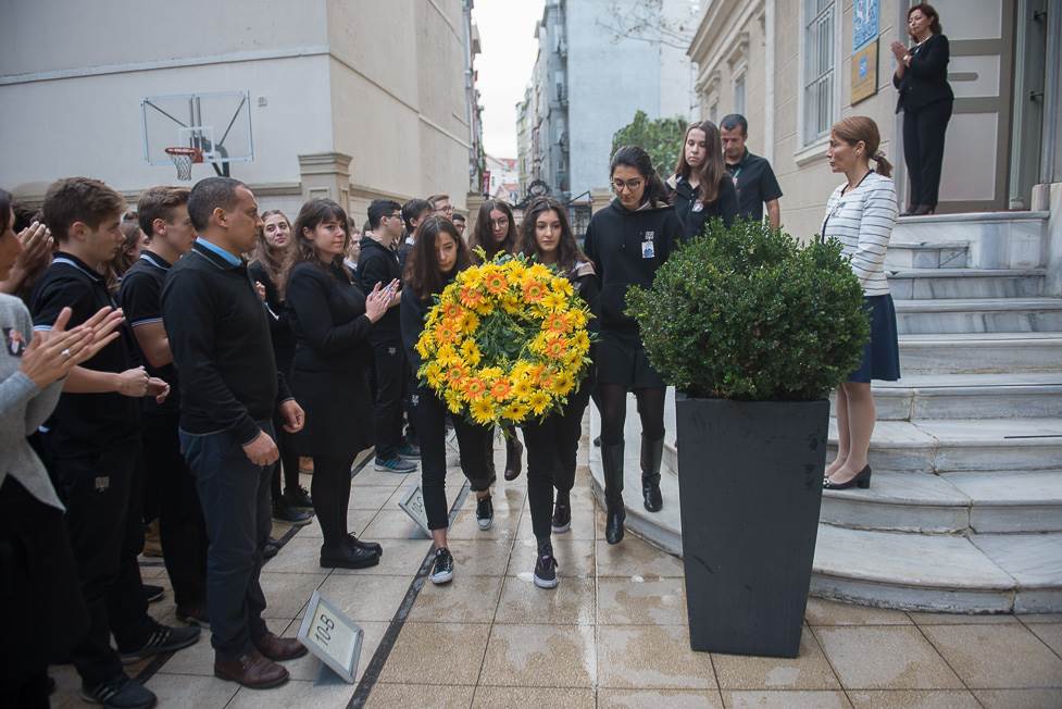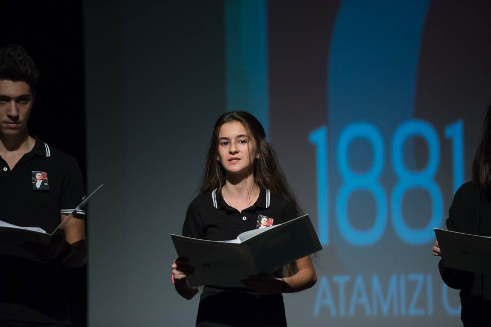 Okulumuz Türk Müdür Başyardımcısı Minâ Akcen öğrencilere şöyle seslendi: “’Biz hiç kimsenin düşmanı değiliz, sadece insanlığın düşmanı olanların düşmanıyız’ diyen Atatürk’ün insanlık projesi; yurtta barış dünyada barış ilkesi ile pekiştirilmiş, ulusaldan evrensele uzanan bir özgürlük, bir bağımsızlık, bir kardeşlik ve bir barış idealidir.”