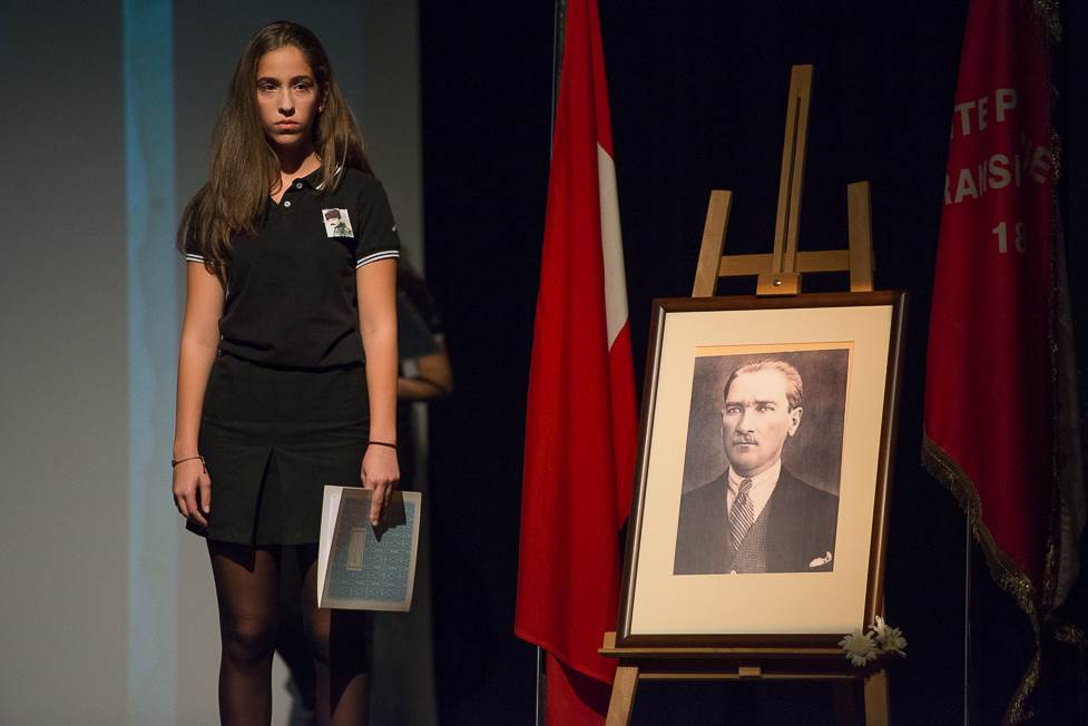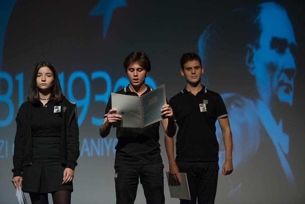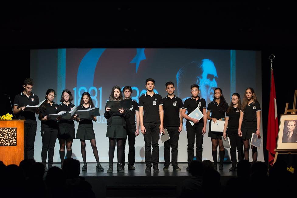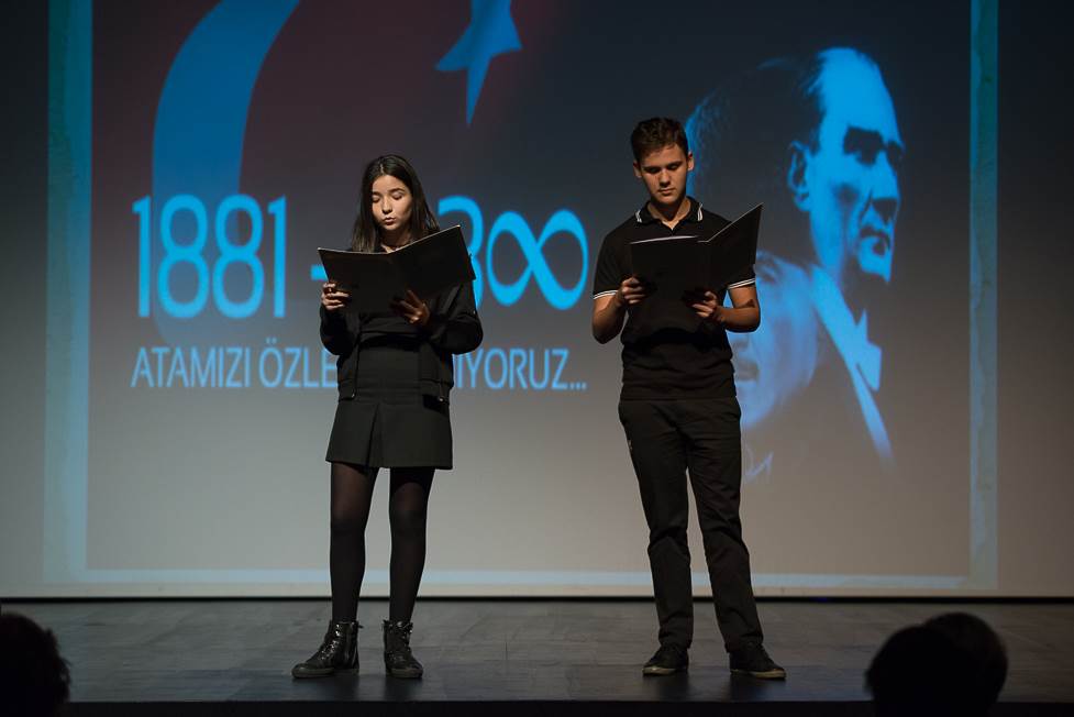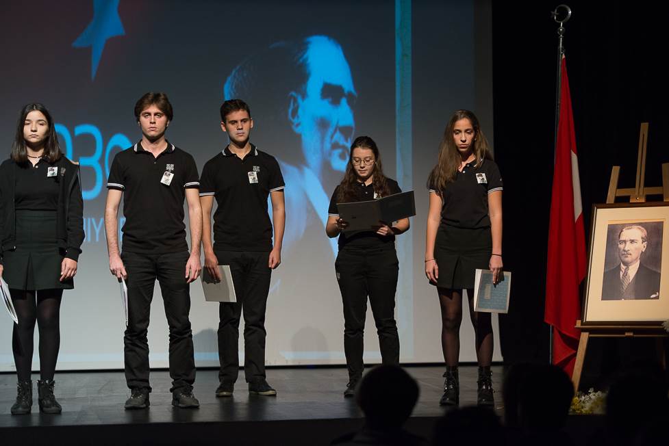 Törende Atatürk fotoğraflarından oluşan bir slayt gösterisi Atamızın sevdiği şarkılar eşlinde izlendi. Öğrencilerimiz şiirler okudular. “Dünya Basını Atatürk’ü Yazıyor” bölümünde Atatürk’ün vefatı üzerine dünyanın dört bir yanındaki gazetelerde çıkan haberler ekrana yansıtıldı. Tören tüm öğrencilerin tek bir ağızdan “Gençliğin Atatürk’e Cevabı” metnini okunmasıyla sona erdi.
