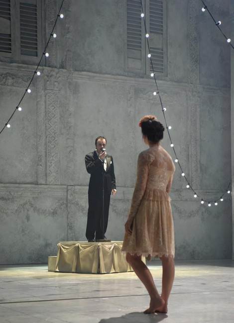 Shakespeare’in efsanevi eseri, mutlak aşkın vücut bulduğu öykü olarak yüzyıllar boyunca çeşitli uyarlamalara konu oldu. Oysa, bu birinci katmanın altındaki tortulara bakıldığında siyah bir güneş saklanmaktadır: siyasetin çürümüşlüğü, aile içi nefret, karmaşık ve ıssız karakterler Güney İtalya’da geçen bir aşk hikayesinin romantik okumasından daha öteye taşır seyirciyi. Orada güneş ruhlara çarpar, yoksul İtalya’nın yitik ihtişamından geriye harabe duvarlar kalmıştır, akıl dışı korkular ve halkın batıl inançları hala canlıdır. Oyunun rejisörü, Shakespeare’in dilinin olağanüstü çoğulluğunun tüm yankılarını yakalamayı başarır : acımasız, dolgun bir kuvvet ve mizah.