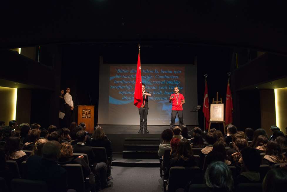 Öğrencilerimiz Cumhuriyet’in kurucusu Mustafa Kemal Atatürk’ü, her zamankinden daha çok anladıklarını, hiç unutmayacaklarını ve ona layık olacaklarını belirten bir sunum gerçekleştirdiler. “Savaştan yeni çıkmış Türkiye” ve “Biz Cumhuriyet’i böyle kazandık.” görüntülerinin izlenmesinin ardından bir grup öğrenci “Aydın mısın?” şiirini dramatize ettiler.