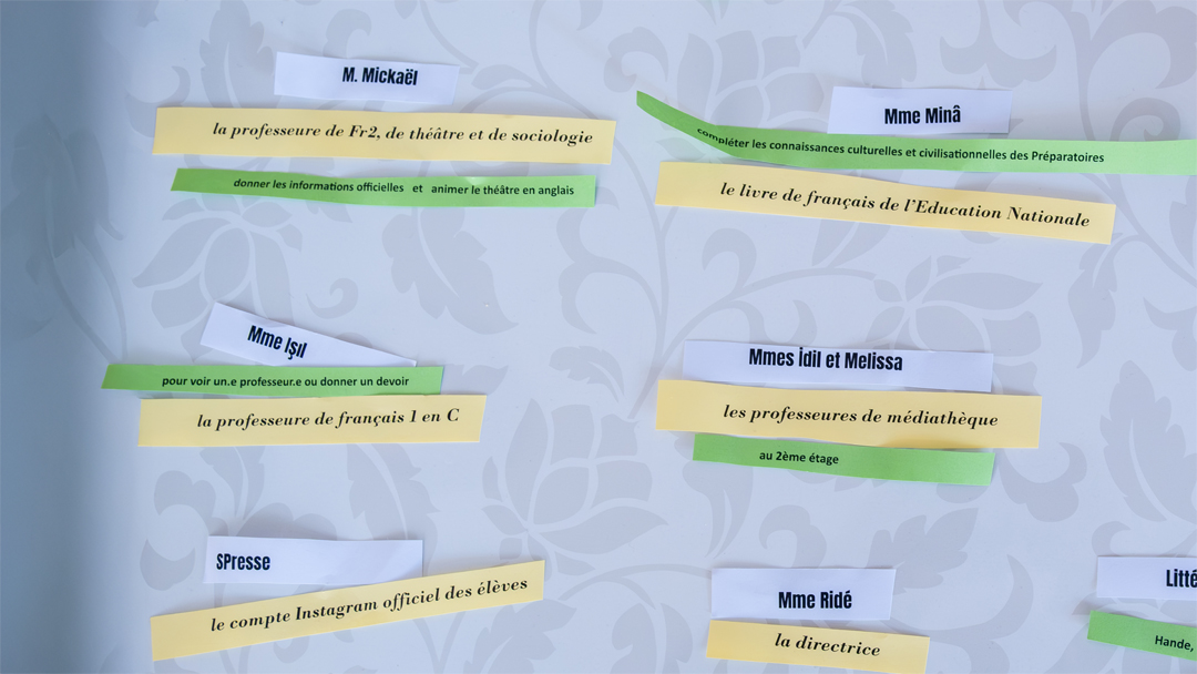 Nous apprendre beaucoup de nouveaux mots à Büyükada. Nous faisons des groupes et joué à des jeux. Avec ces jeux, nous pratiquons des matières comme les sciences, les mathématiques, le français et l’anglais. Le français est nouveau pour nous, alors un peu difficile. Par exemple “orphelinat”, ”église”, “forêt”, “écureuil”, “lion”, “jardin”, “panneau” sont des nouveaux mots.