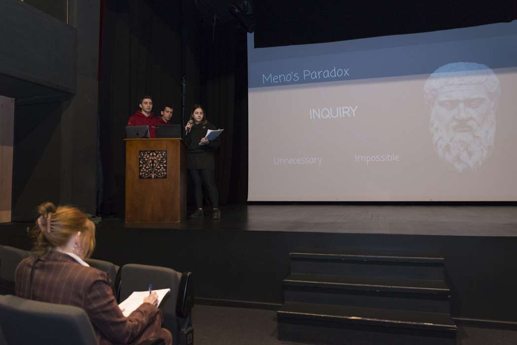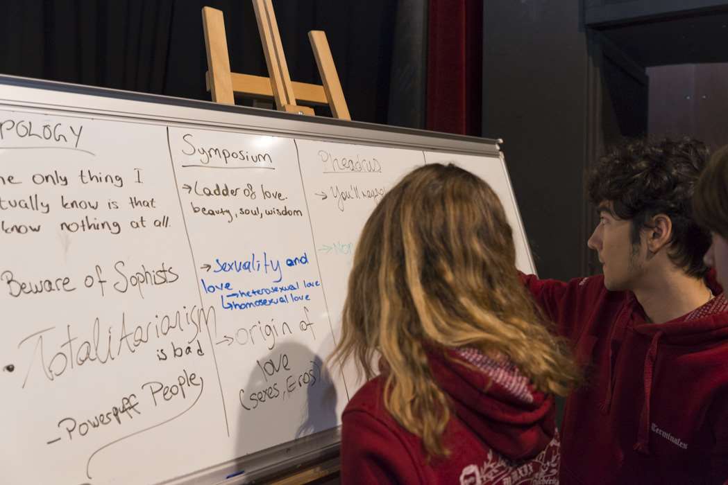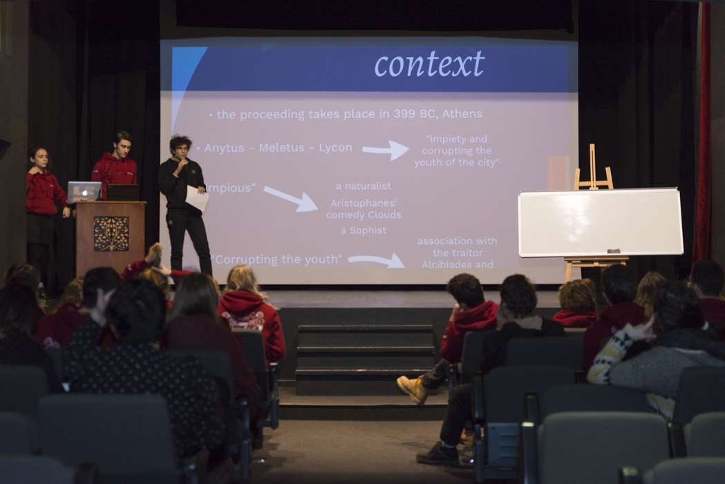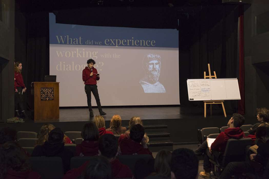 Le lundi 7 janvier, les classes 12C -D -E ont assisté à la cérémonie d’ouverture organisée par les élèves de 12E. Deniz élève en 12E a fait une ouverture musicale avec ses professeurs Hervé Porcher et Christelle Joyeux. Ensuite, l’universitaire norvégienne Guro Hansen Helskog a donné une conférence intitulée “Pratiquer la philosophie dans les recherches sur la sagesse effectuées par le dialogue”. Le mardi 8 janvier, les élèves de 12E ont présenté leurs exposés, fruits de longs mois de recherche sur quatre dialogues : L’Apologie de Socrate, Ménon, le Banquet, Phèdre. Le mercredi 9 janvier, Guro Hansen Helskog a réalisé son séminaire “Les recherches sur la sagesse dans le domaine de la psychologie”. Le jeudi 10 janvier, les élèves de 12E ont participé aux ateliers explorant le thème “la volonté d’être sage et la philosophie du dialogue”. Le vendredi 11 janvier, les élèves de 12C- D-E au dernier atelier conçu à partir d’exercices extraits de l’ouvrage de Guro Hansen Helskog.
