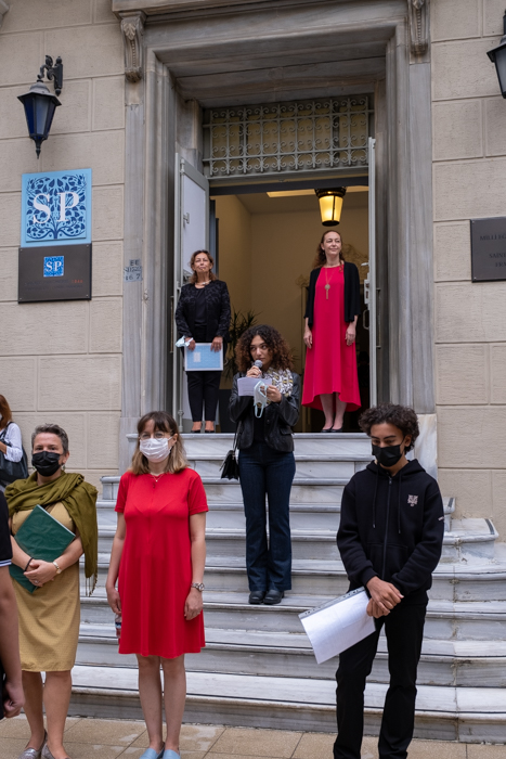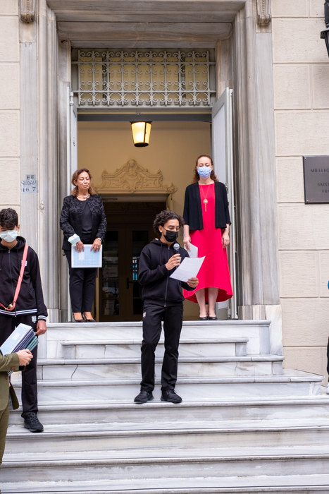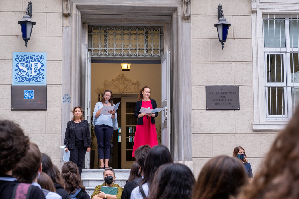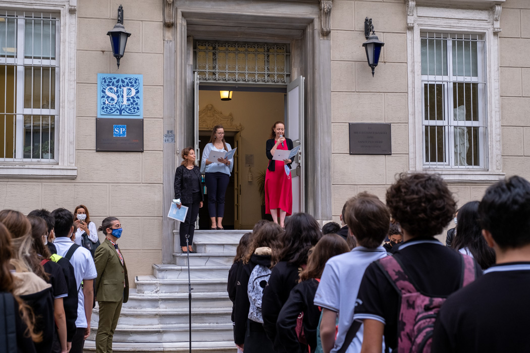 « (…) Zor bir süreçten geçtik, geçmeye de devam ediyoruz, güzel haberler yakındır düşüncesiyle ve umuduyla atıyoruz ilk adımlarımızı bu yeni ders yılına, yepyeni bir başlangıç olsun istiyoruz, yaşanan tüm olumsuzlukların geride bırakıldığı… (…) Birlik ve beraberlik ruhunu tüm içtenliği ile iliklerine kadar hisseden, hepimiz birimiz Birimiz hepimiz için ilkesiyle geleceği inşa eden, geçmişiyle ve geleceği ile dev bir ailenin Sainte Pulchérie ailesinin üyesi olmanın verdiği güven ve güç… »