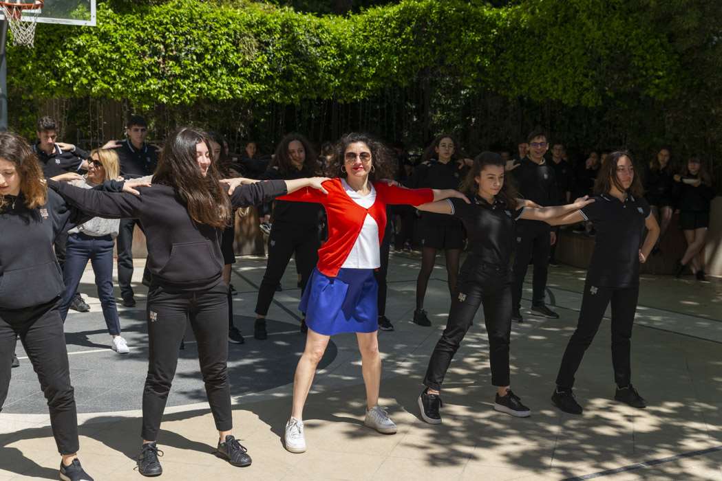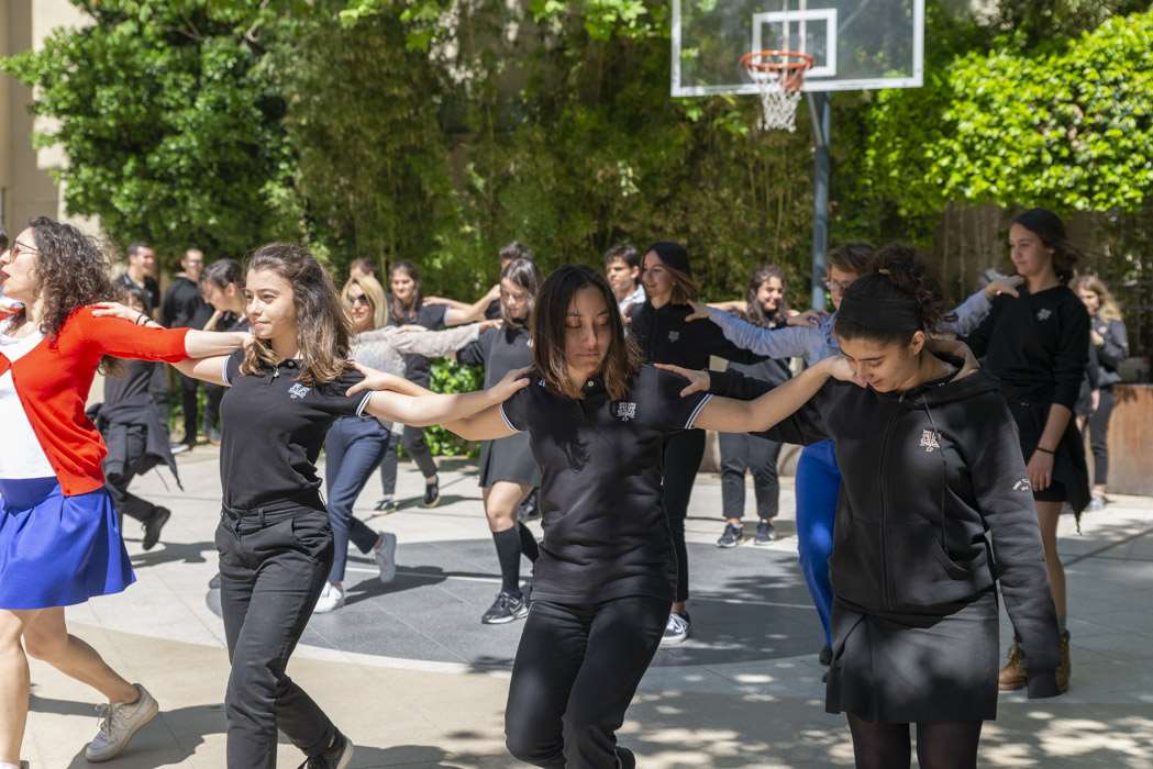 Notre première escale a été la danse traditionnelle ’le sirtaki’. Lundi 13 Mai, nous avons eu la chance de découvrir les pas de cette danse entrainante avec une professionnelle dans la cour du lycée.