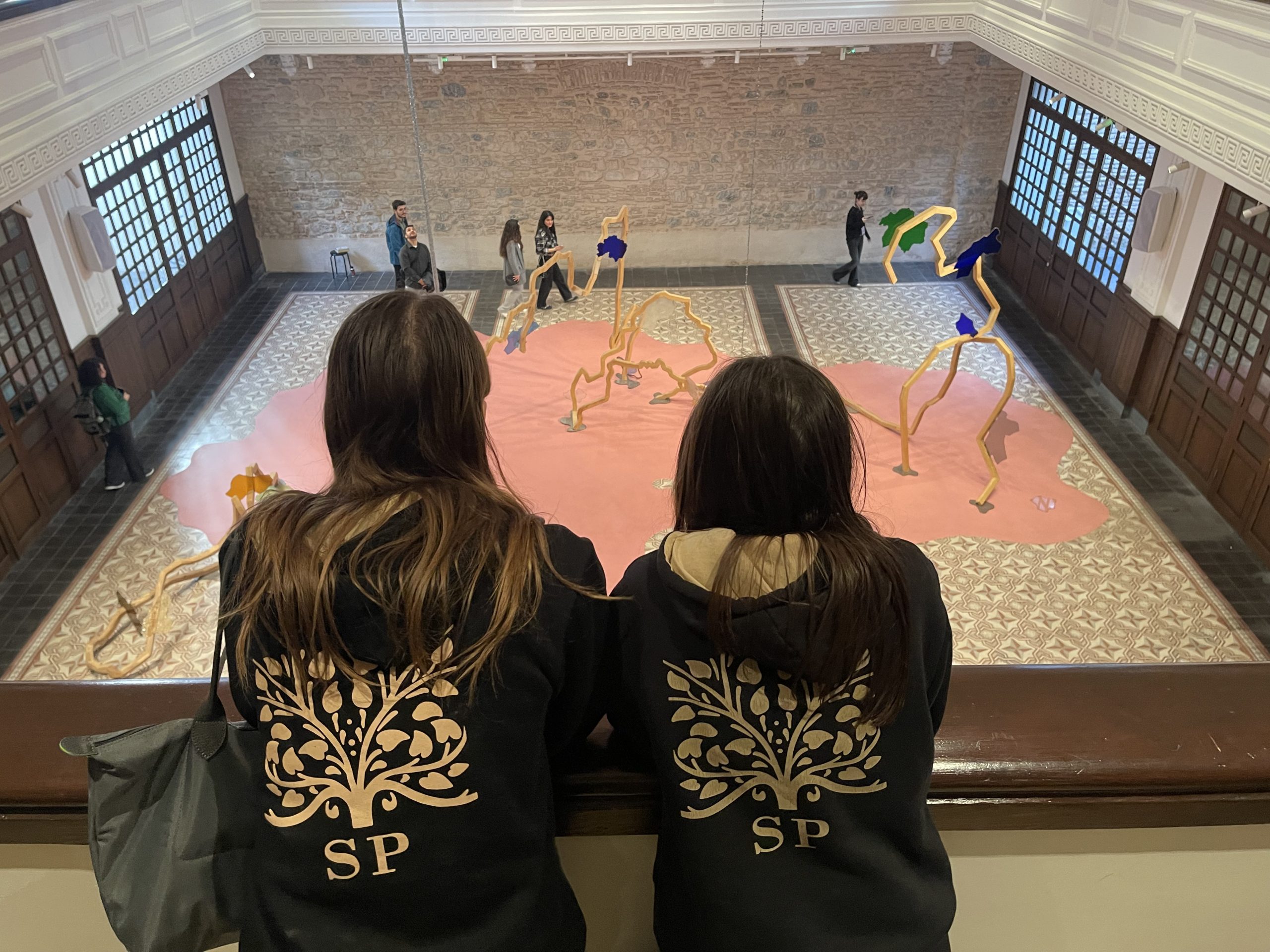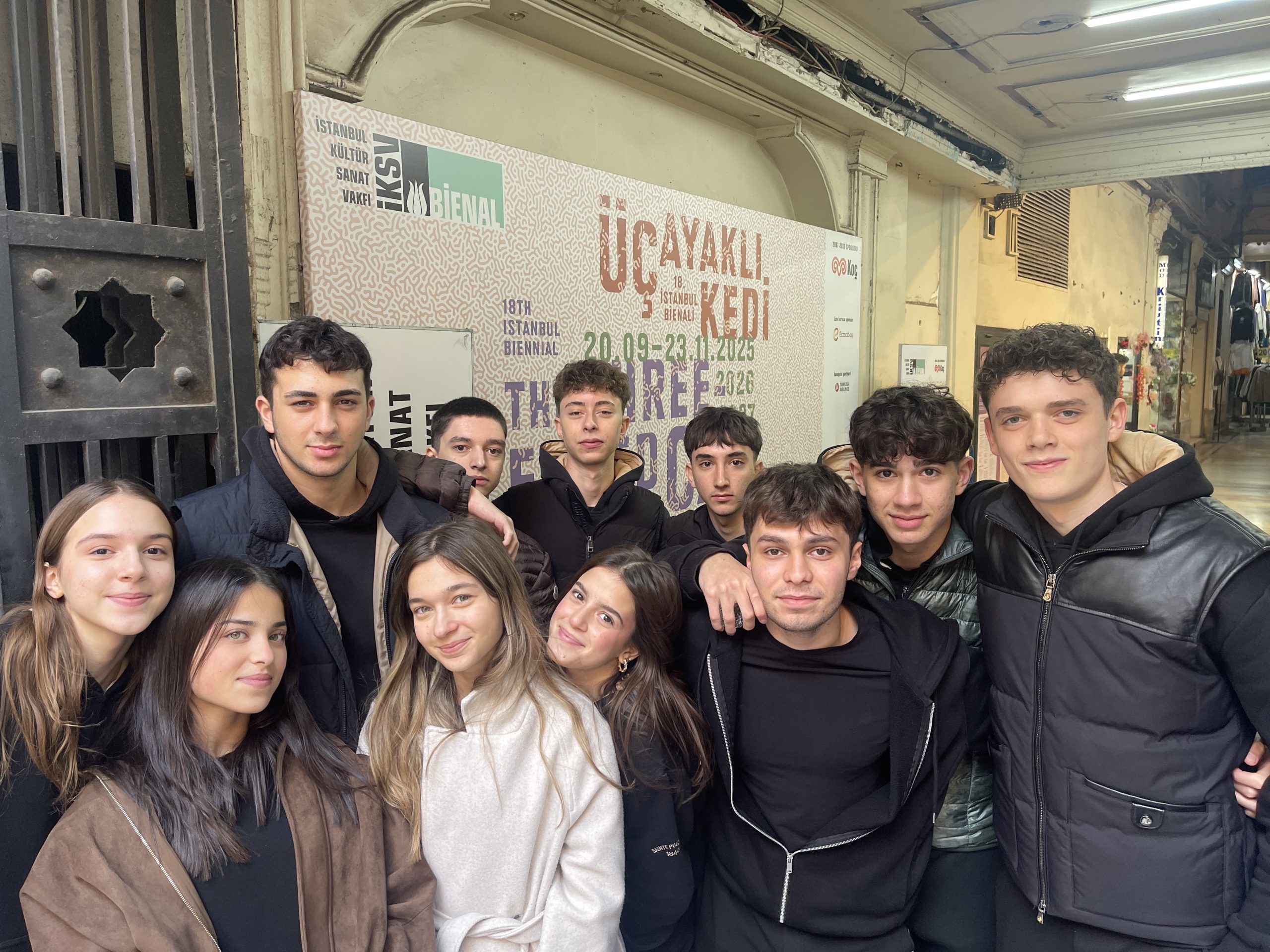 Elhamra Han, Eski Fransız Yetimhanesi Bahçesi ve Galata Rum Okulu’na gerçekleştirdiğimiz bu gezi, öğrencilerimize “kendini koruma”, “gelecek olasılıkları”, “kolektif ve kentsel bellek” ile “kimlik ve kültürel çeşitlilik” gibi temalar etrafında şekillenen kapsamlı bir sanat deneyimi sundu. Öyle ki; kültürel ve toplumsal dönüşümlere odaklanan, uluslararası bir perspektif ortaya koyan; çağımızın hızla artan yıkım süreçlerini, zorunlu göçleri ve süreğen krizleri temsil ederken aynı zamanda eksiklik ve kırılganlık durumlarının içinden doğan dayanışma ve direnç biçimlerine işaret eden konulardaki sanat eserlerini inceleme fırsatı buldular. Bu gezi, sanat ile toplum arasındaki ilişkiyi öğrencilerimizin yerinde deneyimlemelerini hedefleyerek planlanmıştır. Derslerde ele aldığımız teorik kavramlar, müze ve bienal ortamında somut karşılıklarını bulmaktadır.. Öğrencilerimiz uluslararası bir bağlamda çağdaş sanat yaklaşımlarını keşfetmeleri ve sanatın toplumsal ile kentsel sorunlara nasıl yanıt ürettiğini gözlemlemeleri amaçlanmıştır. Öğrencilerimiz, eserleri inceleyerek eleştirel düşünme ve analiz becerilerini geliştirmeleri, sanatı bir tartışma ve ifade alanı olarak deneyimlemeleri önceliklendirilmiştir. Bu bienal gezisi, Görsel Sanatlar ve Sanat Tarihi derslerinde işlenen konuların doğal bir uzantısı olarak, öğrencilerin çağdaş sanatla doğrudan etkileşime geçmesini sağlamıştır. İstanbul’un kültürel mekânlarını daha yakından tanımalarını, sanatsal ve toplumsal duyarlılıklarını geliştirmelerini ve yaratıcılıklarını günlük yaşamla ilişkilendirmelerini mümkün kılmıştır.